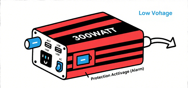 Overload Protection: Automatically shuts down and sounds an alarm when overloaded, and further protects the battery and inverter through the integrated fuse.
