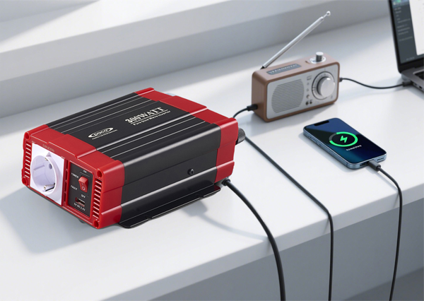 Vehicle Emergency Scenario: During long-distance driving, if the car battery is temporarily dead, the inverter can be used to connect a backup battery to power vehicle-mounted devices (such as dashcams and car refrigerators); at the same time, it can also charge mobile phones, tablets and other devices to avoid emergency communication problems caused by dead devices.