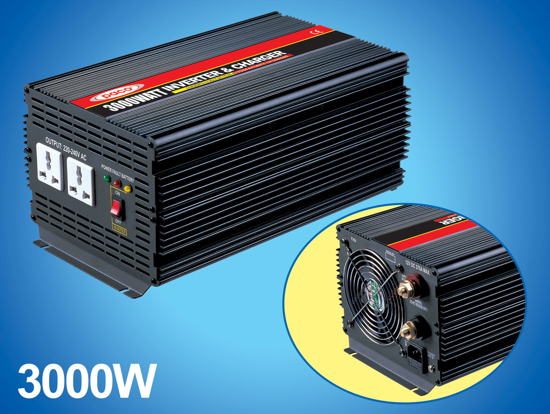Power Inverter with Battery Charger 3000W 12V